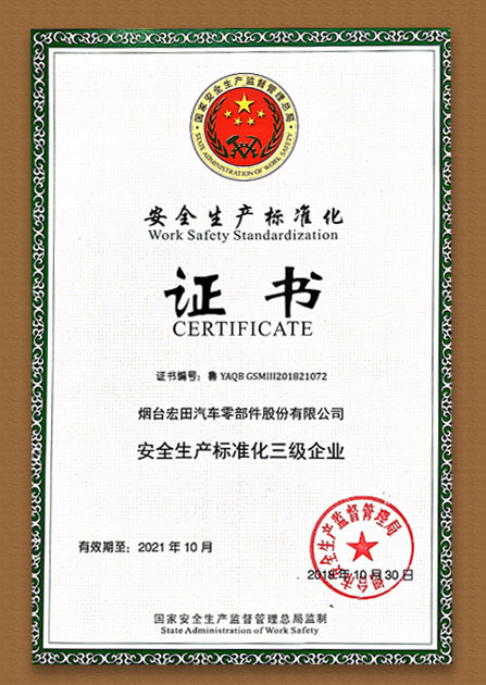 安全生產(chǎn)標(biāo)準(zhǔn)化,通過(guò)建立安全生產(chǎn)責(zé)任制,制定安全管理制度和操作規(guī)程,排查治理隱患和監(jiān)控重大危險(xiǎn)源,建立預(yù)防機(jī)制,規(guī)范生產(chǎn)行為,使各生產(chǎn)環(huán)節(jié)符合有關(guān)安全生產(chǎn)法律法規(guī)和標(biāo)準(zhǔn)規(guī)范的要求,人(人員)、機(jī)(機(jī)械)、料(材料)、法(工法)、環(huán)(環(huán)境)、測(cè)(測(cè)量)處于良好的生產(chǎn)狀態(tài),并持續(xù)改進(jìn),不斷加強(qiáng)企業(yè)安全生產(chǎn)規(guī)范化建設(shè),宏田公司宏田獲得“安全生產(chǎn)標(biāo)準(zhǔn)化三級(jí)企業(yè)”認(rèn)證企業(yè)。